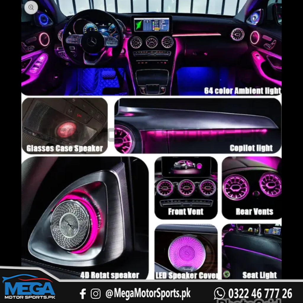 Enhance your driving experience with the Mercedes C Class/C63 Interior Ambient lighting. The grip to grip feature provides ambient lighting throughout the interior, creating a comfortable and luxurious atmosphere. Available for model years 2014-2021. Upgrade to a truly immersive driving experience.